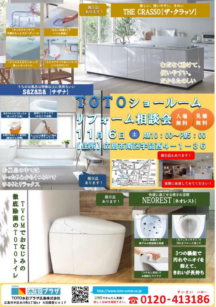 2021年11月6日(土) TOTO広島ショールーム リフォーム相談会 開催!!