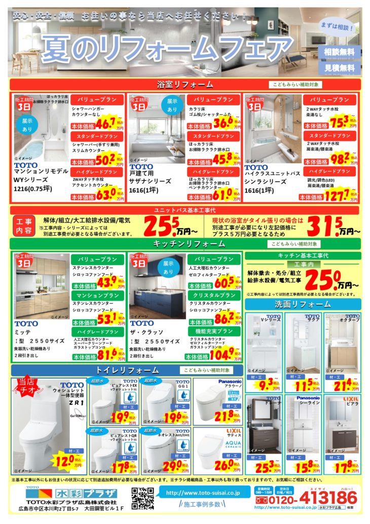 パッキン交換1つから、リフォームの相談まで、TOTO水彩プラザ広島にぜひ一度ご相談ください!